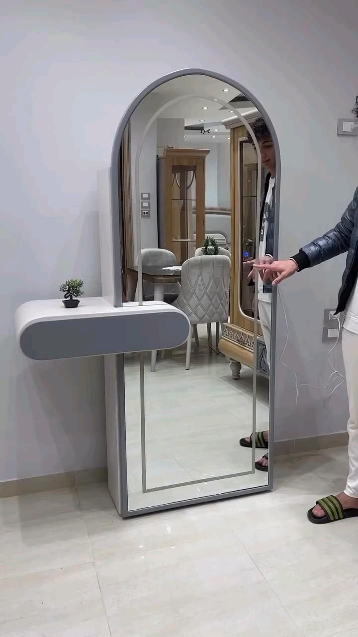The Miraggio Vault Dresser combines a lavish full-size mirror with a hidden pull-to-open cabinet and spacious drawer, offering a stylish, space-saving solution for modern bedrooms and dressing areas.