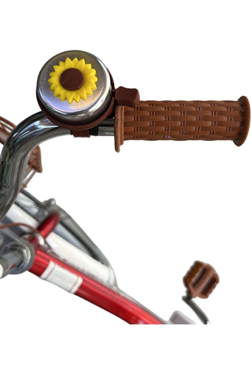 This 16-inch bike comes equipped with side wheels to provide balance and support for beginners, along with air tube tires that offer a smooth and comfortable ride on various surfaces. The metal wheel covers help keep clothing clean by blocking out dirt, while the front metal basket adds convenience for carrying items like water bottles, snacks, or toys. The design is brought to life with a cheerful sunflower logo and a handle-mounted bell, giving the bike a fun and friendly vibe. An adjustable seat ensures that the bike can grow along with your child, offering long-term usability and comfort.
