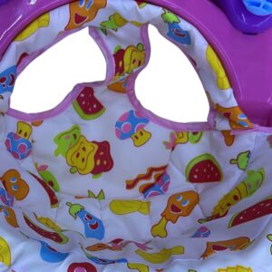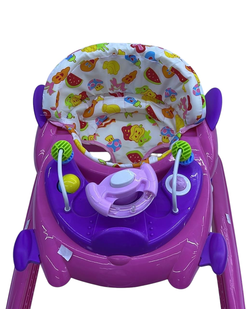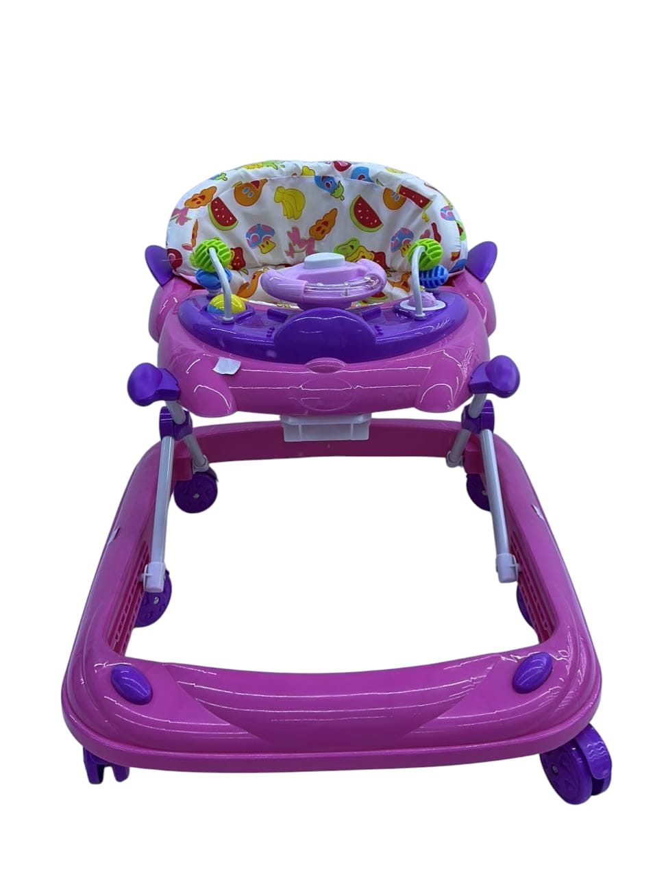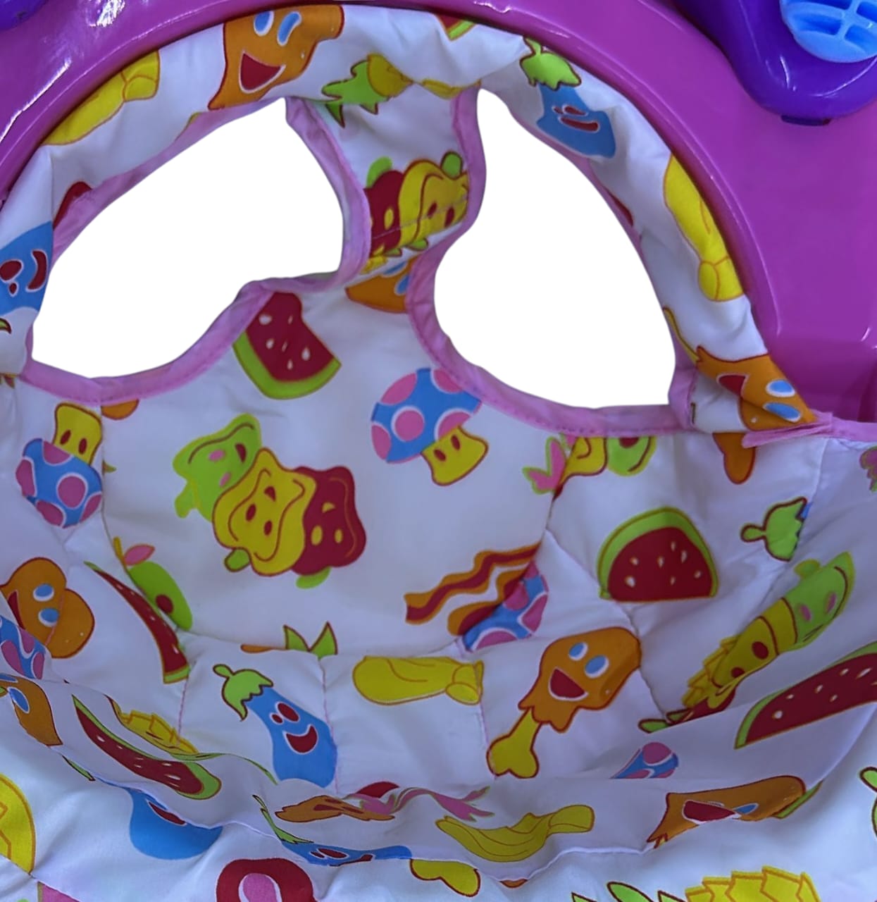 A fun and girly walker in pink and purple, featuring a steering-style toy tray and quick-convert rocking base.