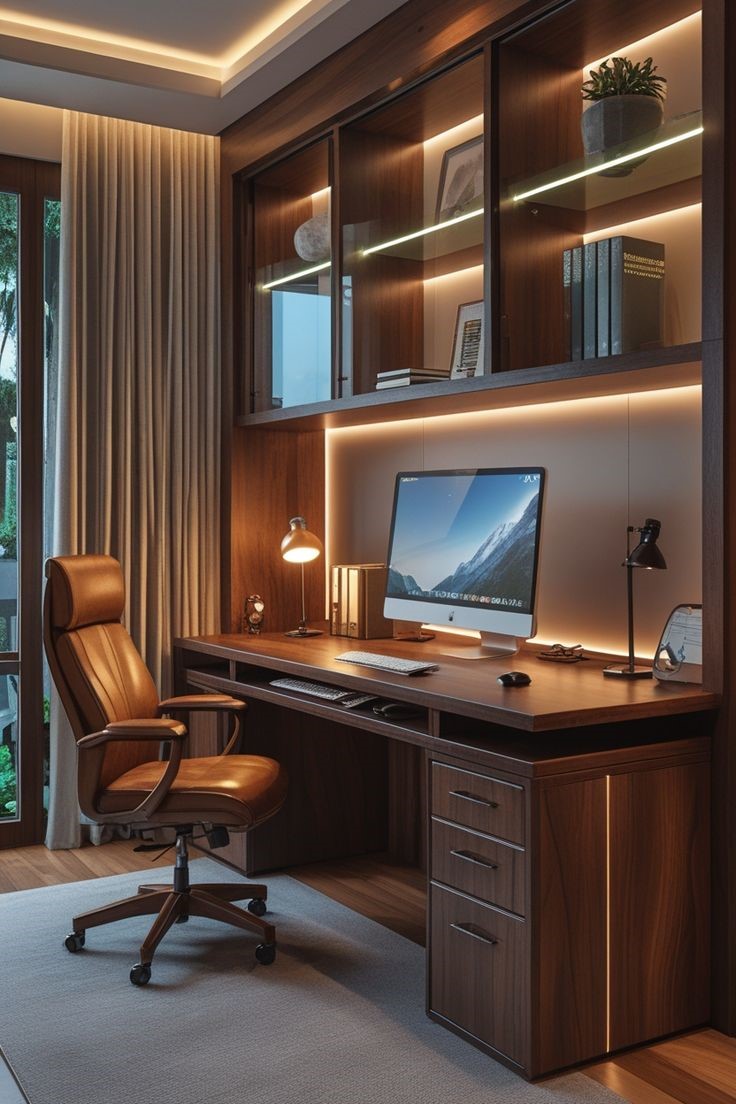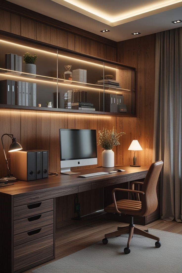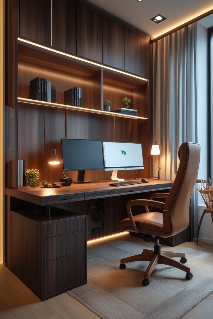 Be the first to review “The Metro-Pro Integrated Wall Suite: Walnut-Inlay Executive Desk with Slate-Texture Cabinetry and Multi-Level Task Lighting”